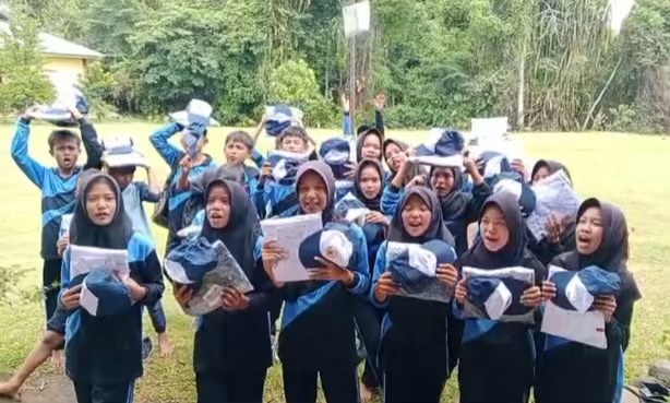 “Terima Kasih pak Bupati Bengkulu Utara atas seragam barunya,” ucap puluhan siswa lewat video sembari memperlihatkan seragam putih birunya.