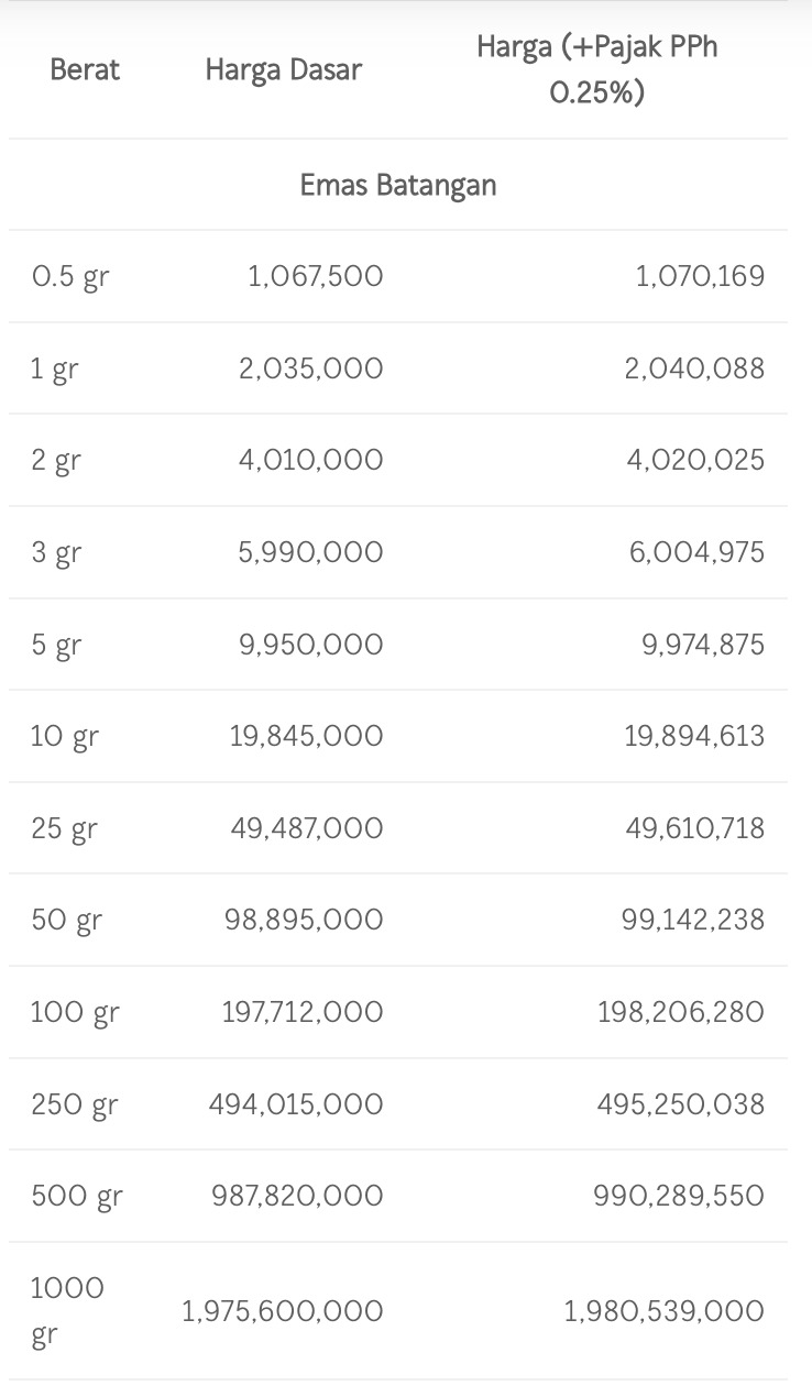 Berikut daftar harga emas Logam Mulia Antam selengkapnya untuk hari ini.
