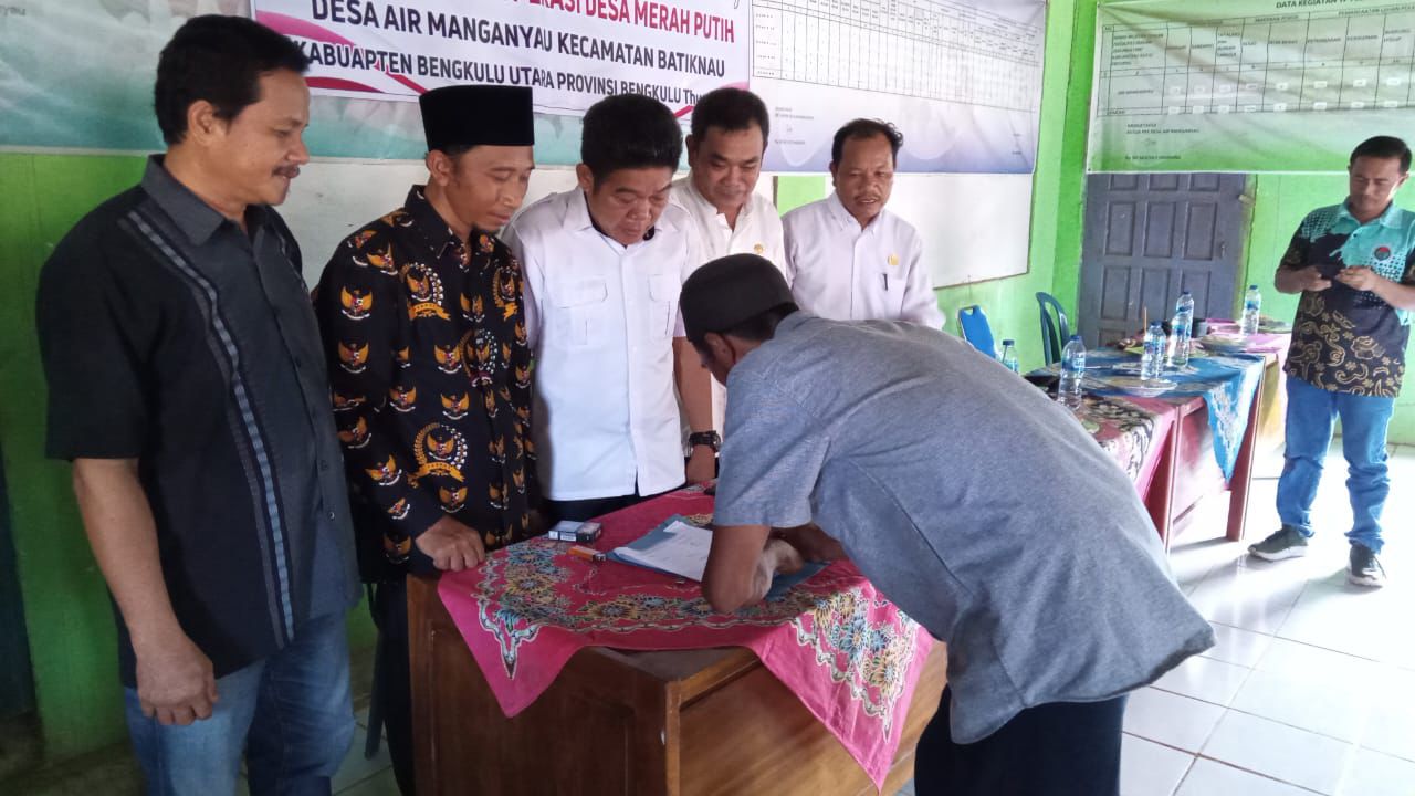BATIK NAU, RADARUTARA.ID - Pemerintah Desa Air Manganyau Kecamatan Batik Nau bersama BPD menggelar Musyawarah Desa (Musdes) dalam rangka pembentukan Koperasi Merah Putih, Rabu (14/5).
