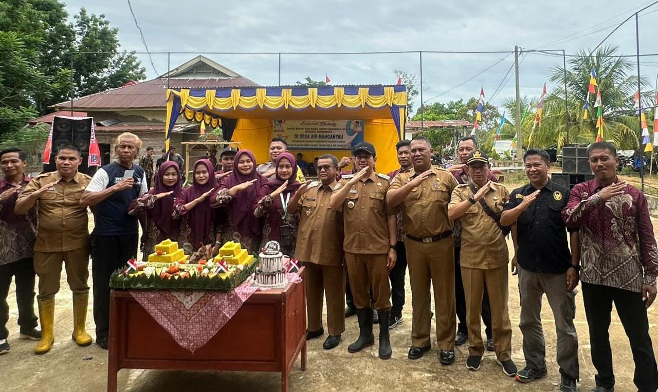 “Pertama-tama saya mengucapkan selamat ulang tahun ke-37 Desa Air Manganyau. Saya yakin, capaian kemajuan desa ini lahir dari semangat gotong royong, kerja keras, serta kepemimpinan kepala desa yang baik. Semua pihak memiliki andil besar dalam membangun desa,” ujar Bupati.